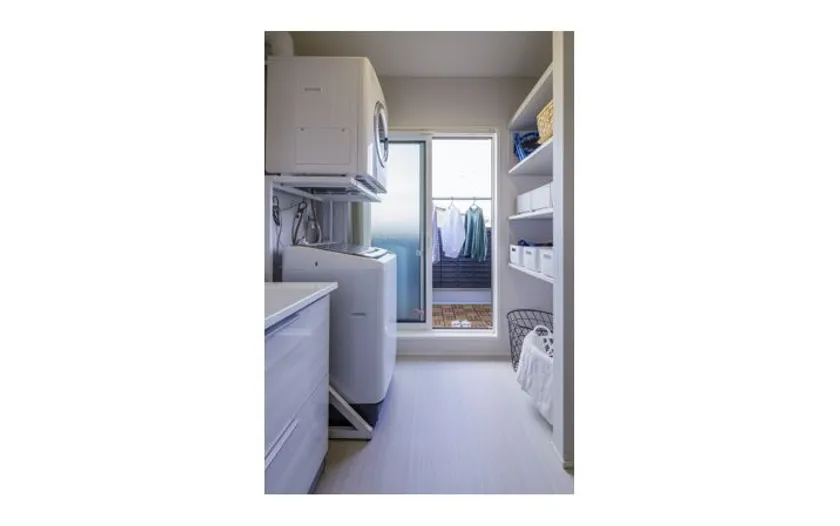 掃除はロボット掃除機が行ってくれるので、残る最大の難関は洗濯。いかに効率的にできるようにするかがこの家の大きなテーマでした。