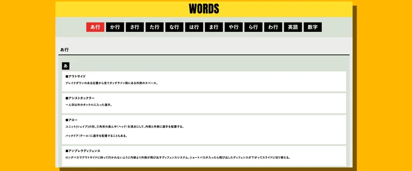 ルール用語だけではなく、ラグビーの現場で選手やコーチなどが使用する用語を整理しました。