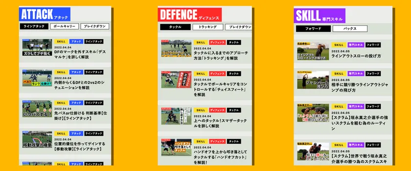 スキル動画の他に、戦術やルール、試合解説もカテゴリー分けして表示します。