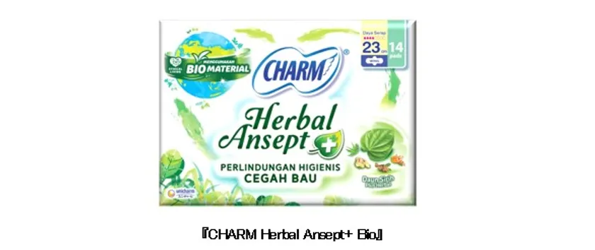 ユニ・チャーム株式会社(代表取締役 社長執行役員:高原豪久)のインドネシア現地法人であるPT UNI-CHARM INDONESIA Tbkは、生理用品ブランド『CHARM』より、肌に触れる表面シート部分、パッケージや個包装にサトウキビ由来のバイオマスプラスチックを配合した『CHARM Herbal Ansept+ Bio』を、「世界環境デー(2022年6月5日)」に合わせて発売します。