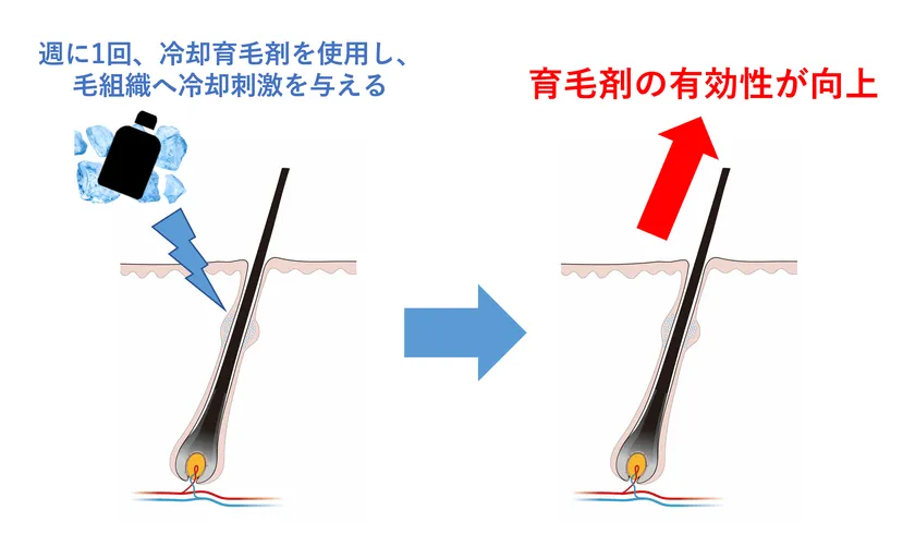 【冷却刺激による育毛効果を発見。週に1回の刺激頻度が重要。】