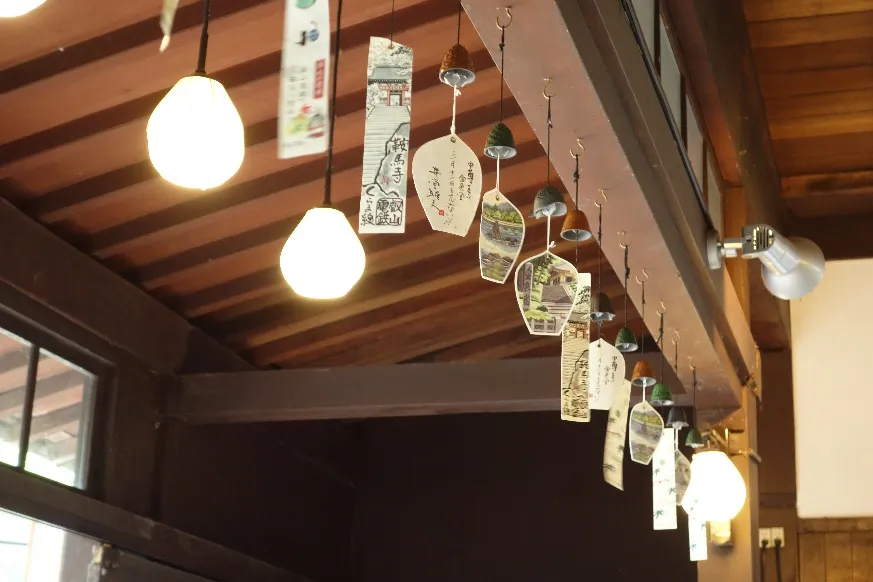 叡山電車 鞍馬駅のホームと待合室に約200個の南部風鈴を飾り付けます。