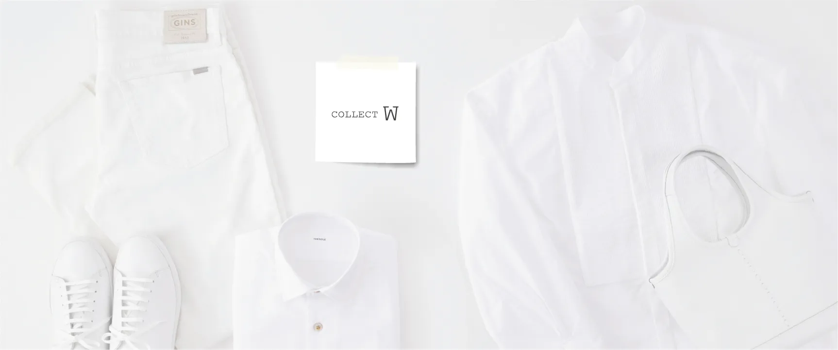 定番色中の定番、「白」のみをセレクトしたECショップ。「COLLECT W」ではシンプルな色だからこそ上質な素材や精巧な創りを選りすぐり、長年受け継がれてきた確かな技術と、次世代へ受け継がれていくセンスの光る逸品をジャンルレス、ジェンダーフルイドに集めました。派手さ華やかさではない雅美なアイテムを1点1点愛でていただければと願っています。