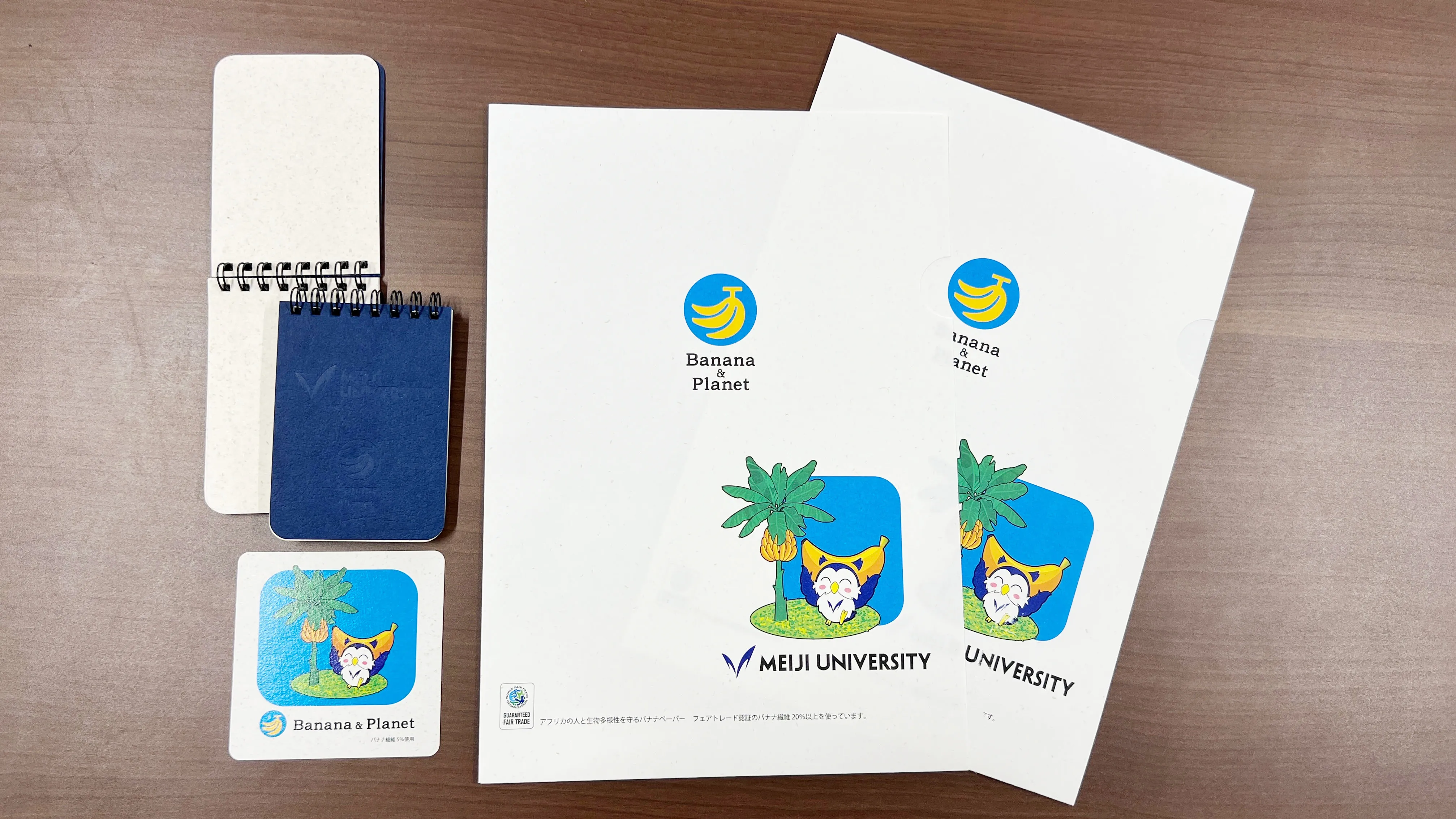 バナナペーパーを使用したコースター、メモ帳、紙ファイルを製作。コースターは、大学オリジナルグッズとして販売化もされている。