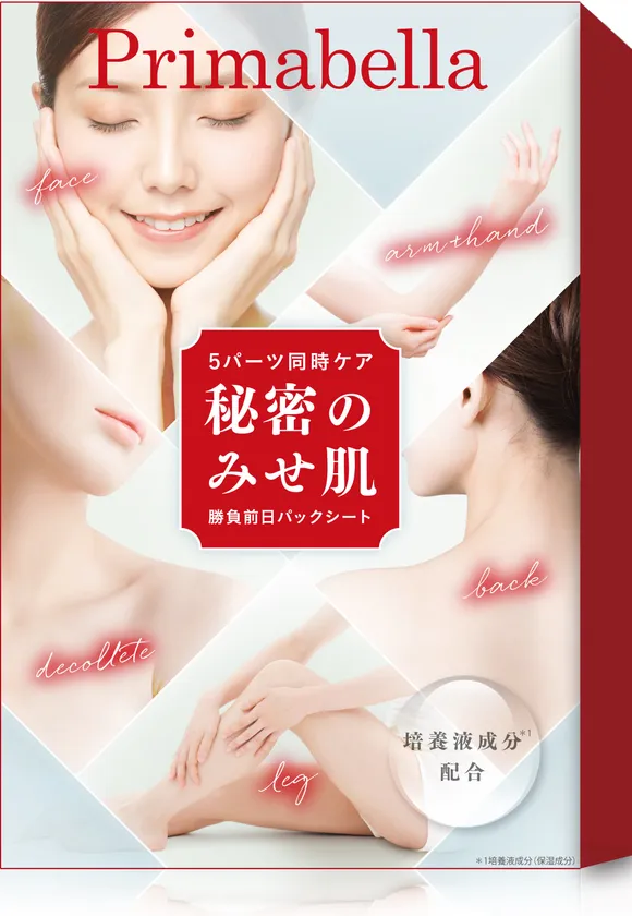 「プリマベラパックシート」は、全身トータルケア美容パック。「みせ肌」を中心にケアできるよう、腕・ひじ、脚・ひざ・デコルテ&背中など、自分の好きなところを、それぞれ別々にパックできます。入浴またはシャワー後、大切な日に備えて肌を整えてください。