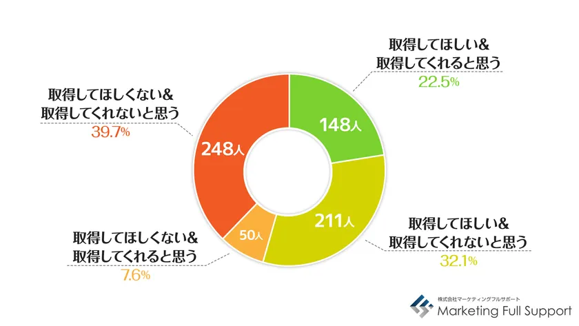 (3) 一方で、“「取ってほしくない」し、「取らないだろう」”が4割近くに上り、(4) 1割弱だが“「取ってほしくない」が、「取ってくれるだろう」”という回答もあった。