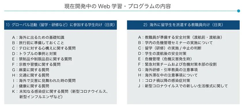 ※外国人留学生向けの危機管理Web学習プログラム(英語版)もリリース予定