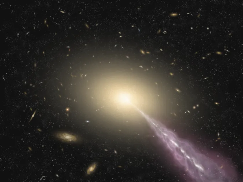 高エネルギージェットを持つ巨大銀河の想像図。Credit:ALMA(ESO/NAOJ/NRAO)