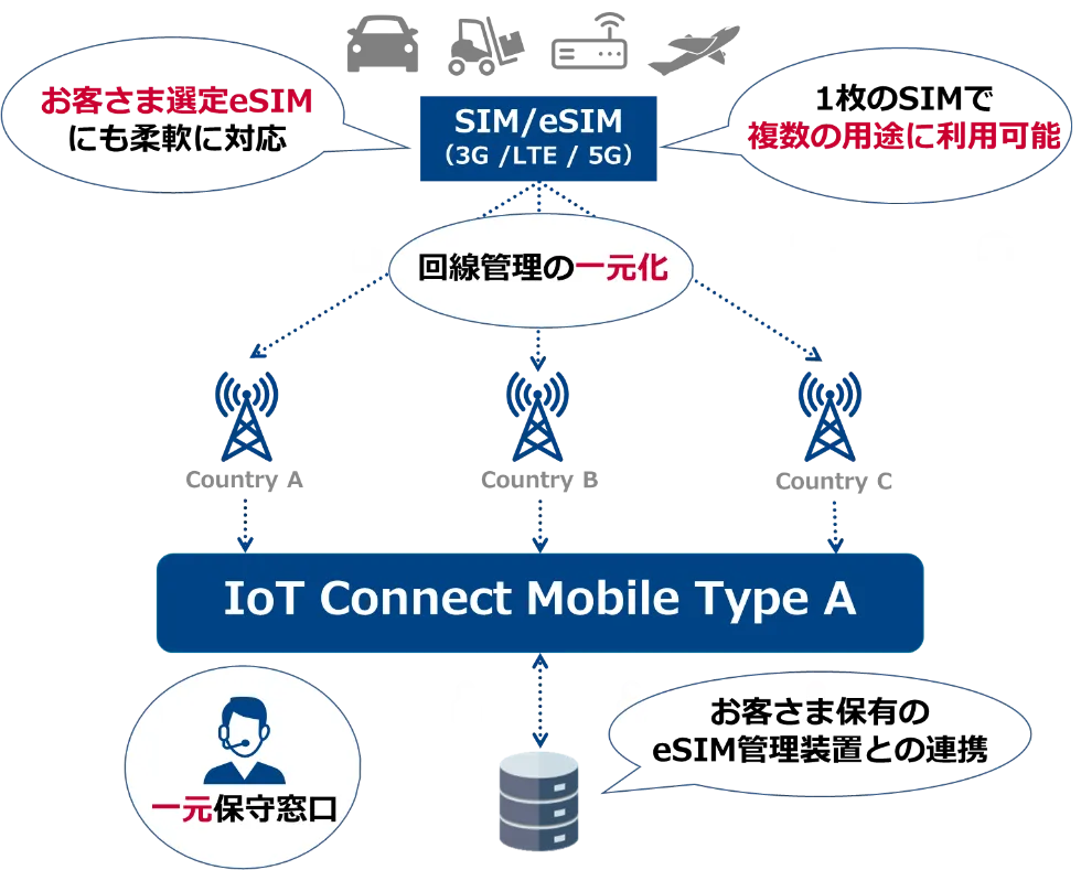 近年IoT機器のグローバル化や高度化が進み、海外市場でのIoT機器台数の伸びは顕著になっています。特に、自動車、建機、農機業界などにおいては、IoT機器が世界各国に輸出されるため、国ごとにIoT機器の回線管理が必要となり、管理コストの増大や複雑化が課題となっています。