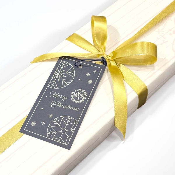 ゴールドのリボンに、前原光榮商店オリジナルのクリスマスオーナメント付きの期間限定ギフトボックスをご用意いたしました。大切な方への贈りものに是非ご利用ください。
