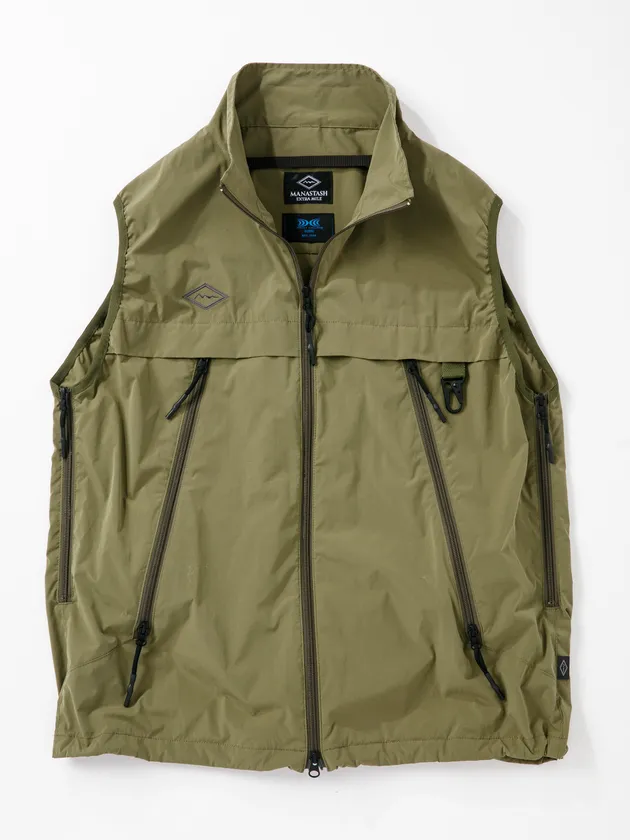 地球温暖化防止を目的として開発された空調服(R)独自の技術と、MANASTASHの企業理念が一つとなって開発された今回の製品。速乾性に優れた高機能素材、収納力のある左右ポケット、鍵なども付けられるカラビナなどのギミックを詰め込んだ、シンプルでスタイリッシュなデザインになっています。