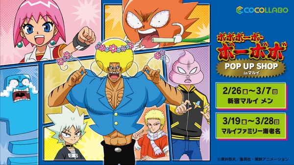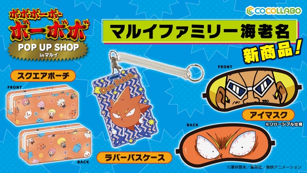 『ボボボーボ・ボーボボ POP UP SHOP in マルイファミリー海老名』では新規描き下ろしグッズやととまめ氏描き起こしミニキャラを使用した商品の販売やイラストパネルの展示、お買い上げ特典の配布などを実施致します。