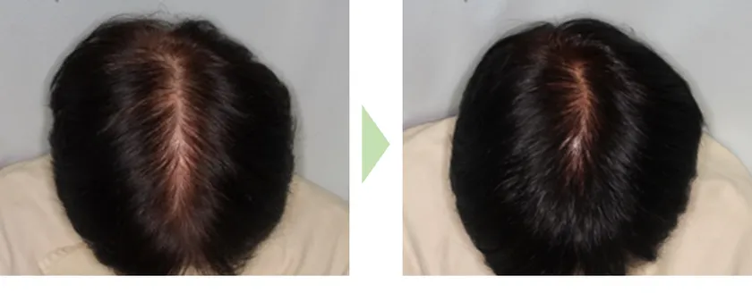 従来の育毛剤にて育毛効果が認められなかった女性を対象とした試験では、週6日は常温の育毛剤、週1日は冷凍庫で保管した育毛剤を使用することで、65%の人に改善が見られました。なかには、3ヶ月という短期間の使用での育毛効果を確認しております。