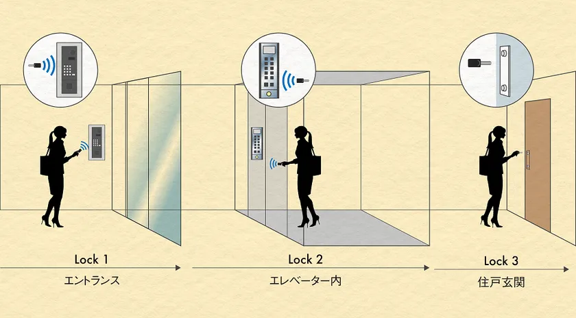 (2) ご自身の居住フロアおよび共用フロアのみに停止する防犯機能付きエレベーター