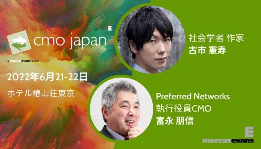 マーカス・エバンズ・イベント・ジャパン・リミテッド(本社:英国/代表:雪下 大輔、以下「マーカスエバンズ」)は、社会学者 古市憲寿氏とPreferred Networks 執行役員 CMO 富永 朋信氏をお迎えし、2022年6月21日(火)から22日(水)にかけてマーケティング部門のビジネスサミット「CMO Japan Summit」を開始します。