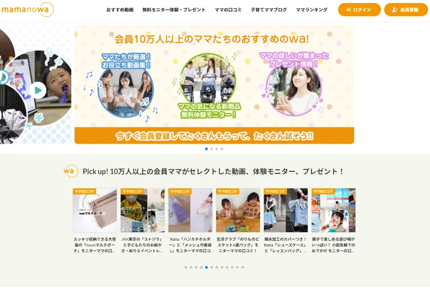 ~たくさん試せる、たくさんもらえる! 会員10万人以上のママたちの声から集めた動画が大集結!~