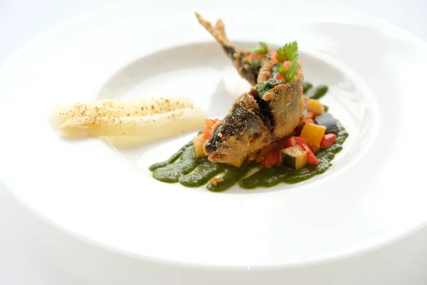 夏野菜のエチュベ ホワイトアスパラガスと香り野菜のソースヴェルト』