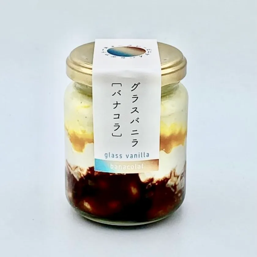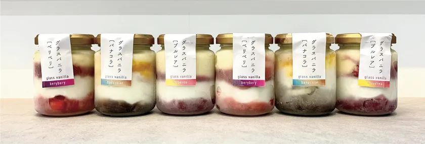 コムクレープでは夏向けの商品として看板商品であり日本初の焦がしクレープである「クレープブリュレ」にバニラクリームを加えてココア生地で巻き急速冷凍させた「クレープブリュレバニラ」を販売していましたが、近年要望が増えているお土産やギフトとして「お持ち帰り」できる商品として「グラスバニラ」シリーズを開発しました。