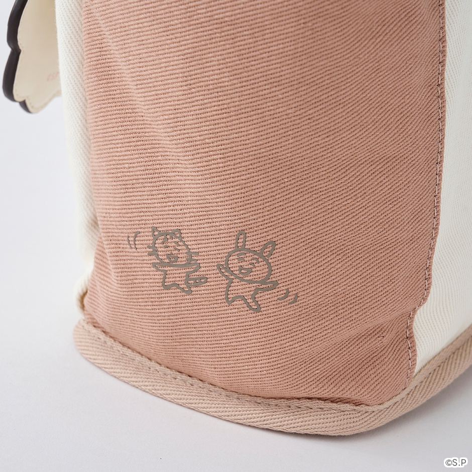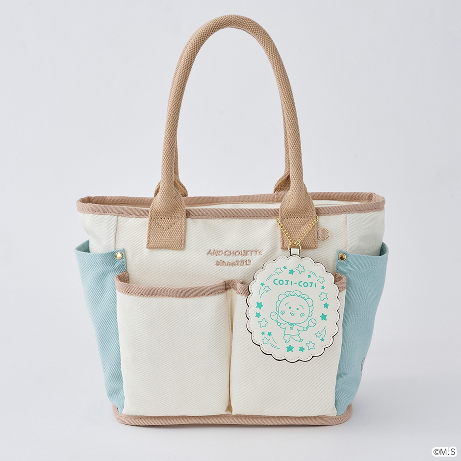 キャンバス生地が使いやすい、デイリーユースできるハンドバッグ。バイカラーにすることでカジュアルすぎず可愛らしい印象に仕上げました。バッグチャームはカードが1枚入る仕様に。バッグ側面には、さくらももこさんお馴染みの動物たちや、メルヘンの国の仲間たちをデザインし、細部にもこだわりました。