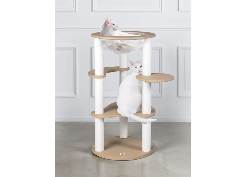 おねこさまとご主人さまに日本製こだわりの逸品を 日本初(※)!レザー調素材の新作キャットタワー、 宇宙ステーションをイメージした木製キャットタワーが新発売