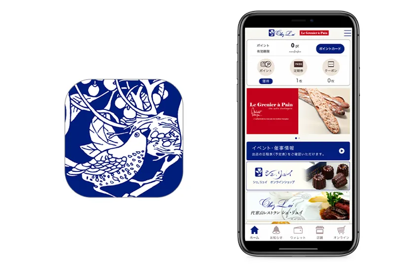 本アプリは、日本ガストロノミー研究所が運営するブーランジュリー&パティスリー『シェ・リュイ』『ル・グルニエ・ア・パン』、カフェ『ロティ シェ・リュイ』、『レストラン シェ・リュイ』で利用可能な会員向けアプリです。会員証機能を搭載し、従来のポイントカードで貯めたポイントの移行にも対応しています。店舗でのお会計金額100円ごとに1ポイントが付与され、貯まったポイントは1ポイント=1円として次回以降利用できる仕組みです。また、『betrend パスチケ』を活用した定期券機能も搭載しており、ご利用シーンや頻度に合わせて各種定期券を使用できます。