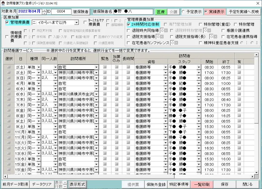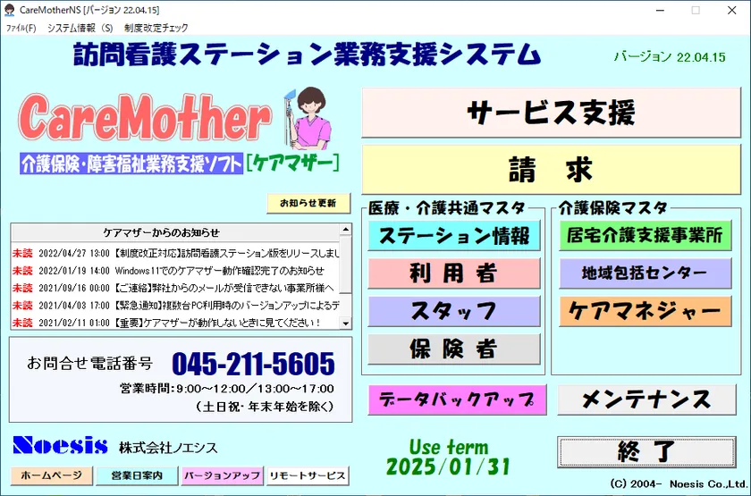 製品名 :介護業務支援ソフト CareMother[ケアマザー]「訪問看護ステーション版」Ver22.04.15