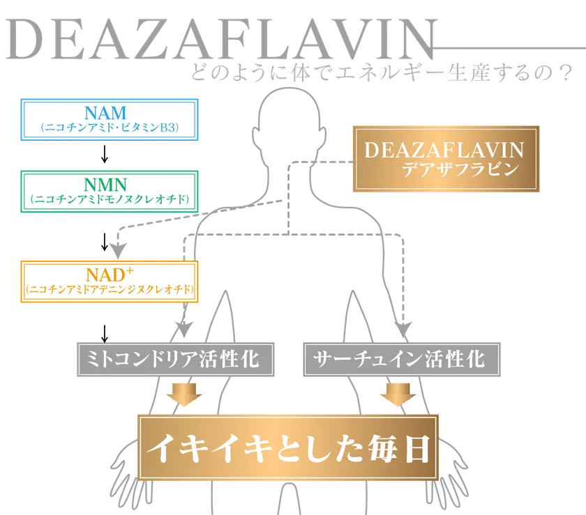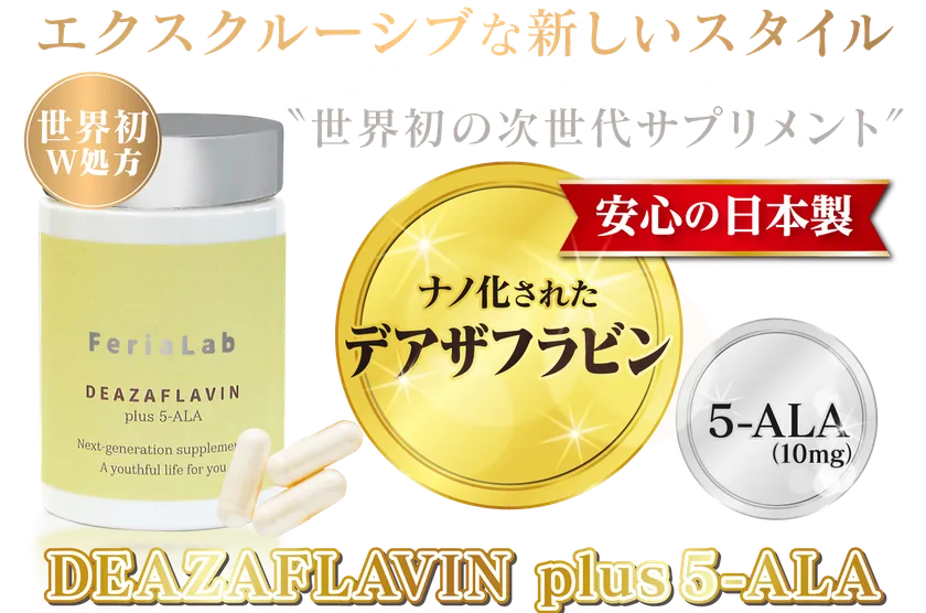 NMNの次に来る細胞活性成分<デアザフラビン>と<5-ALA>を W配合した世界初※のサプリメント 『DEAZAFLAVIN plus 5-ALA』を6月上旬に発売