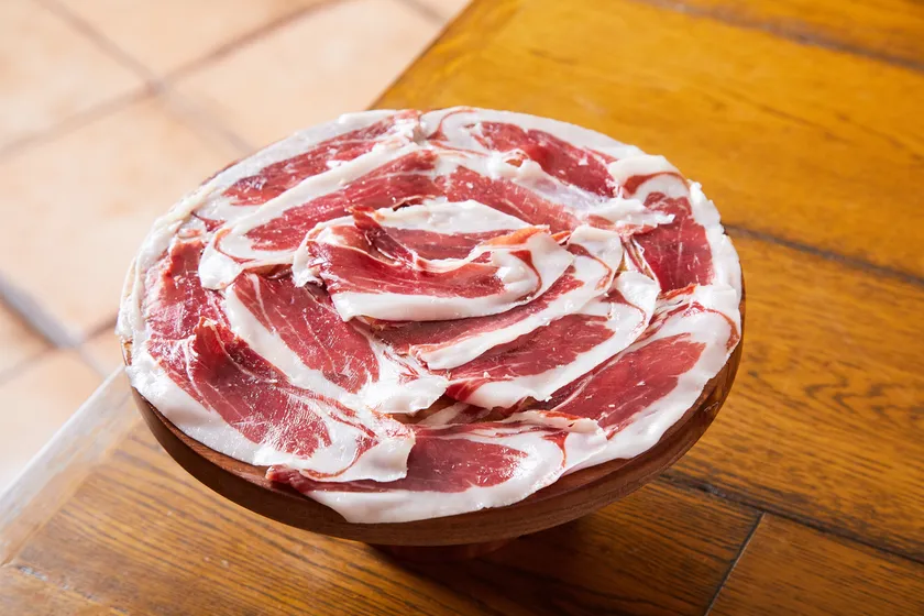 どんぐりを食べて育つイベリコ豚の生ハムは、輸入元と共同購入することによって圧倒的なコストパフォーマンスを実現しました。スペイン北部の食の街アストゥリアスの郷土料理のカチョポなど、これまでにないメニューも加えました。