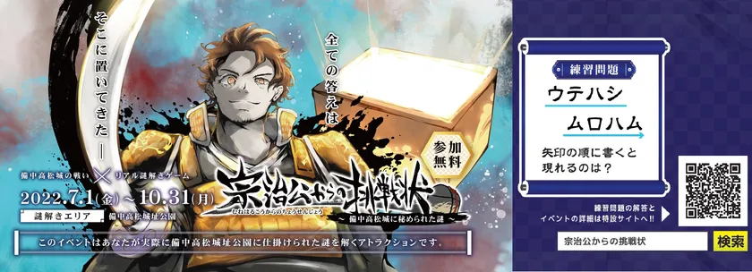 リアル謎解きゲーム「宗治公からの挑戦状」イメージ