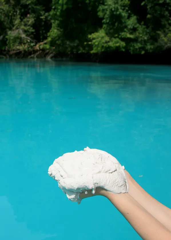 世界遺産であるパラオ共和国のロックアイランドの入り江「ミルキーウエイ(通称)」に堆積するサンゴ由来の貴重な白泥「パラオホワイトクレイ」。このパラオホワイトクレイは、日本で研究され、「パラオ白泥」「パラオ白泥抽出物」と言う2つの化粧品原料(パラオ白泥抽出物は医薬部外品に配合可能)となって化粧品に配合されています。