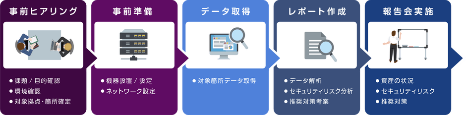 本サービスは、分析装置としてフォアスカウト・テクノロジーズ社の製品を一度だけ利用して、自社の特定拠点のデバイス状況を確認するスポット利用サービスですが、サービス利用後に製品を継続して導入いただくことも可能です。これにより、各デバイスに対するリスクの検知や、安全でないデバイスの制御を継続的に実施し、より安全な社内環境を実現します。