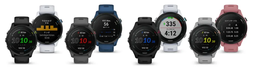 効果的なトレーニングだけでなく、健康と安全、継続するモチベーションもサポートする『Forerunner 255』シリーズは、ランニングを楽しむビギナーから大会出場を目指す本格ランナーまでの、ランニングライフをサポートします。