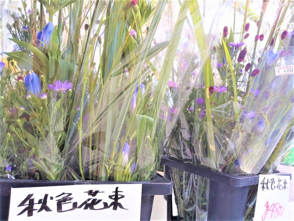 ススキの入った"秋色花束"も素敵。なんだかネーミングが歌謡曲ぽくて、しっとりした気分になりますよね~♪
