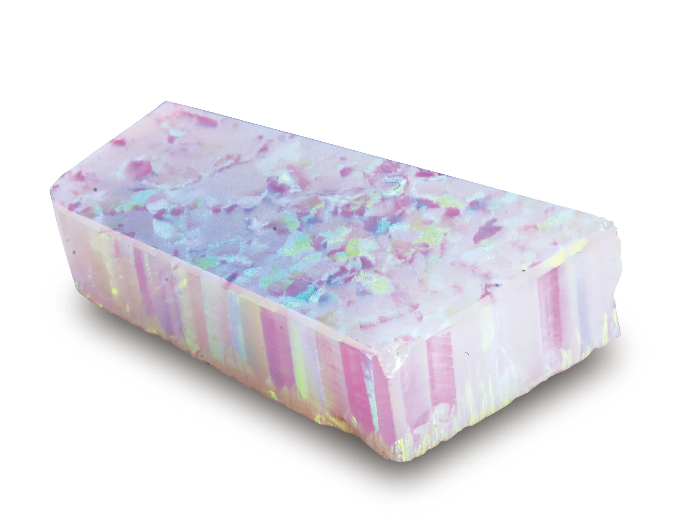 「京都オパール」は、天然オパールと同一の石英粒子をもとにし、当社独自の宝石合成技術により実現した人工オパールです。天然オパールと同様の内部構造を再現しているので、遊色効果による多彩な輝きをもちながらも、オパール独特の「割れ」や「欠け」などのいわゆる「脆さ」を克服し、さまざまな形状に加工が可能です。