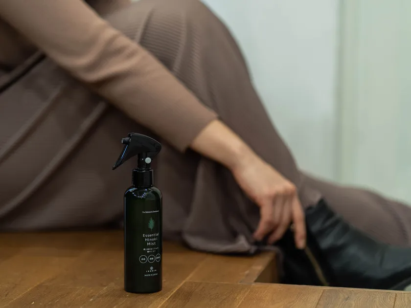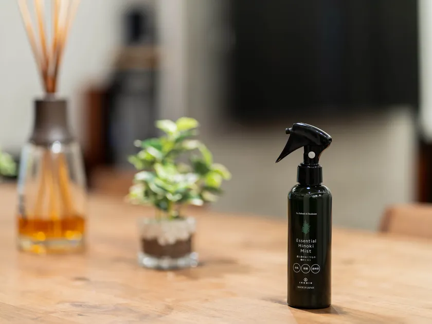 さらに、檜の原木を丸太に加工する際に発生する「おがくず」から精油を丁寧に抽出し、独自の技術で除菌・消臭スプレー「エッセンシャルひのきミスト」を開発。