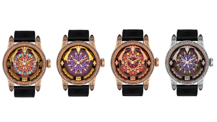 文字盤はヨーロッパ式教会のステンドグラス風をイメージしたデザインとなっております。