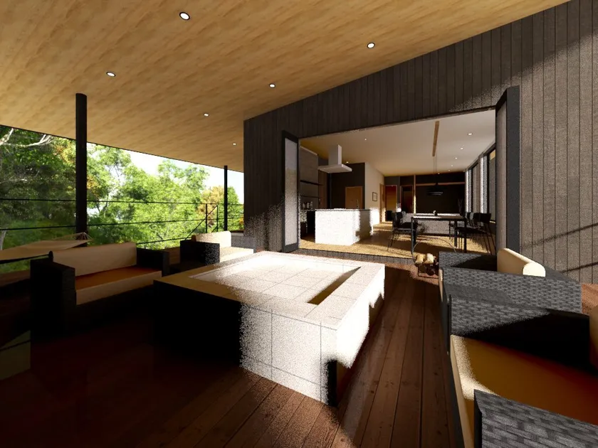 大型ガスコンロ・ファイヤーピット・ハンモック等を常設し、冬季にはバイオエタノール暖炉も導入します。グランピングの枠を超えた「大人のアウトドア」を提案いたします。別荘を買わずとも、一度は憧れる別荘ライフを体感する施設です。