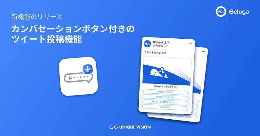 ユニークビジョン株式会社(所在地:東京都渋谷区、代表取締役社長:白土` 良之、以下 ユニークビジョン)は、当社が提供するSNS統合管理ツール『Beluga』にTwitterのカンバセーションボタン付きツイートを投稿する機能を追加したことを報告いたします。
