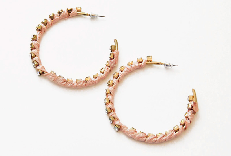 ラインストーン×ピンクリボンロールピアス