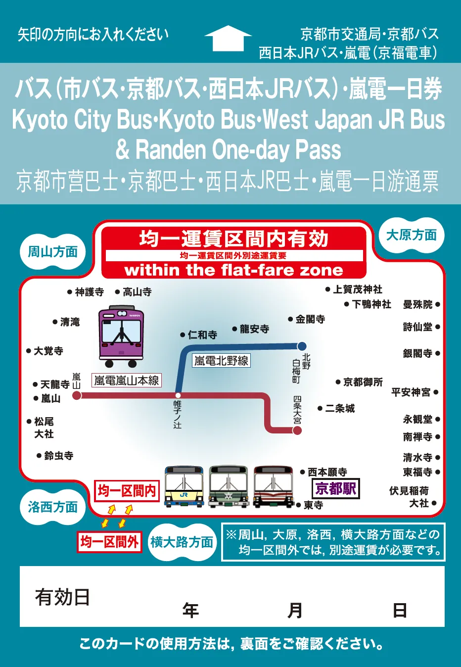 バス(市バス・京都バス・西日本JRバス)・嵐電一日券