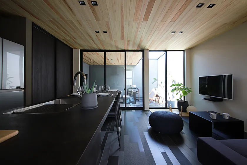 曲線ではなく直線を意識した都心型の住まいをイメージしています。