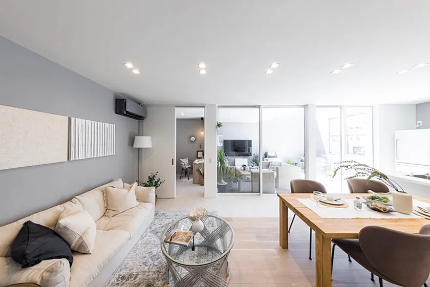 白、黒、グレーを基調としたシンプルで洗練された無彩色のインテリア。