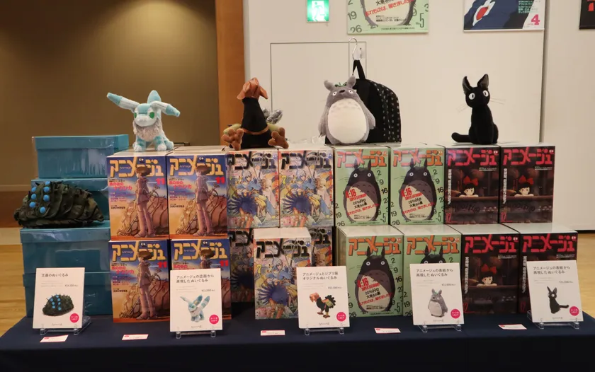 本展では、1983年11月号のアニメージュに掲載された構想段階の青色テトを再現したぬいぐるみや、映画「風の谷のナウシカ」のオープニングデザインのタペストリーなど約150点の展覧会オリジナルグッズを販売しています。