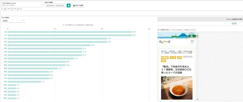 「ウェマー!!」では、記事に訪れたユーザーがどこを重点的に閲覧したか。クリックなどどのようなアクションを行ったかなど興味・関心がデータとして可視化できます。