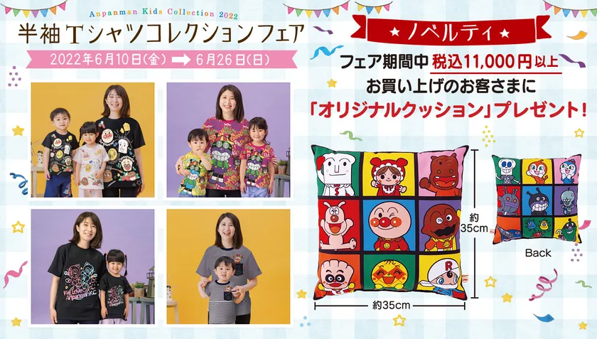 2022年6月10日(金)~2022年6月26日(日)の期間中、店頭およびバンダイナムコグループ公式通販サイト「プレミアムバンダイ内アンパンマンキッズコレクションオンラインショップ」にて11,000円(税込)以上お買い上げのお客様には、「オリジナルクッション」をプレゼント!
