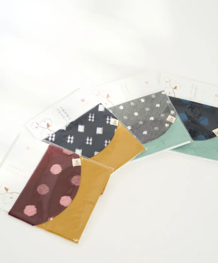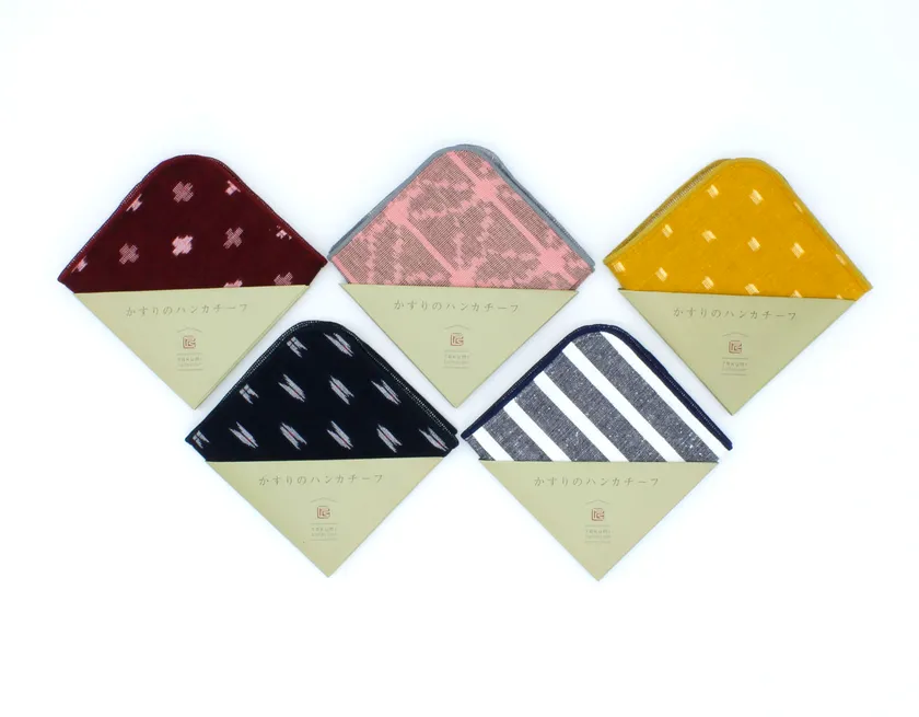 調べるとほかにも色んな思いが込められており、それをリーフレットにまとめさらには同じ柄の反物をガーゼと組み合わせた“かすりのハンカチーフ”を販売。
