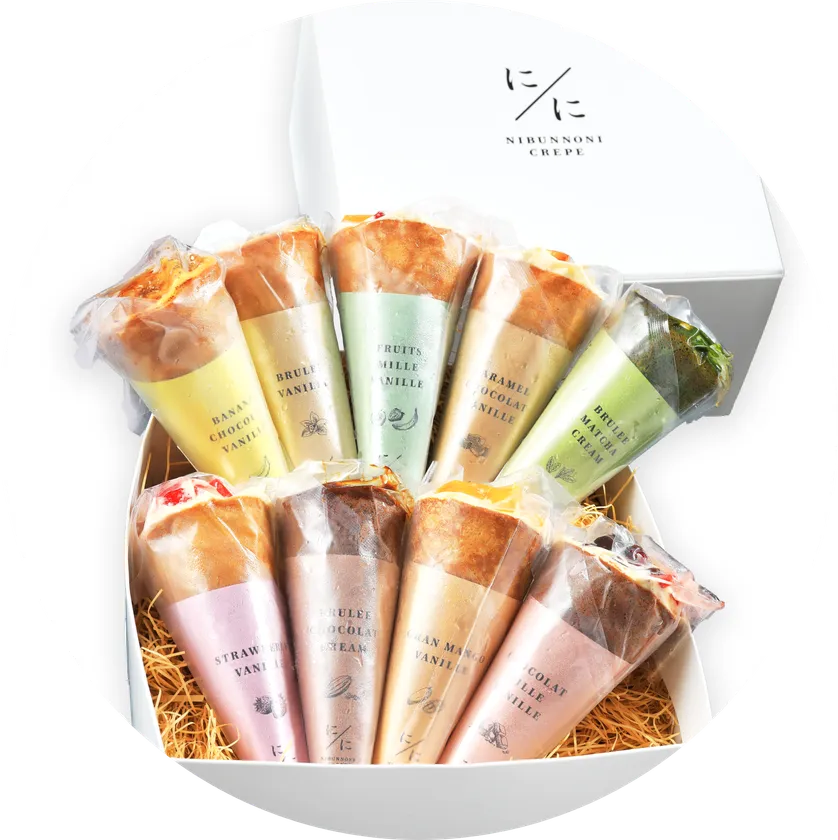 冷凍クレープ専門店「にぶんのにクレープ」は、2021年6月にオンラインショップであるCake.jpに出店し販売を開始、“萌え断カラフルクレープ”として、メディアにも取り上げていただきました。断面が可愛く萌えることから、インスタ映えする萌え断スイーツとしてSNSで話題となり、インスタフォロワー1万人超えの反響をいただきました。