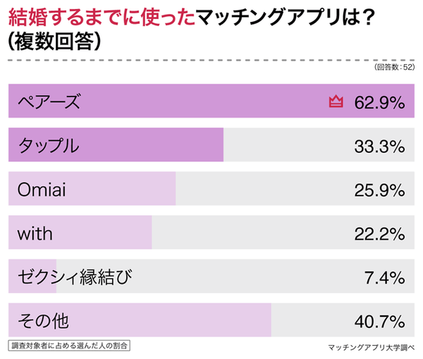 マッチングアプリで結婚した男女が最も利用していたのは「ペアーズ」