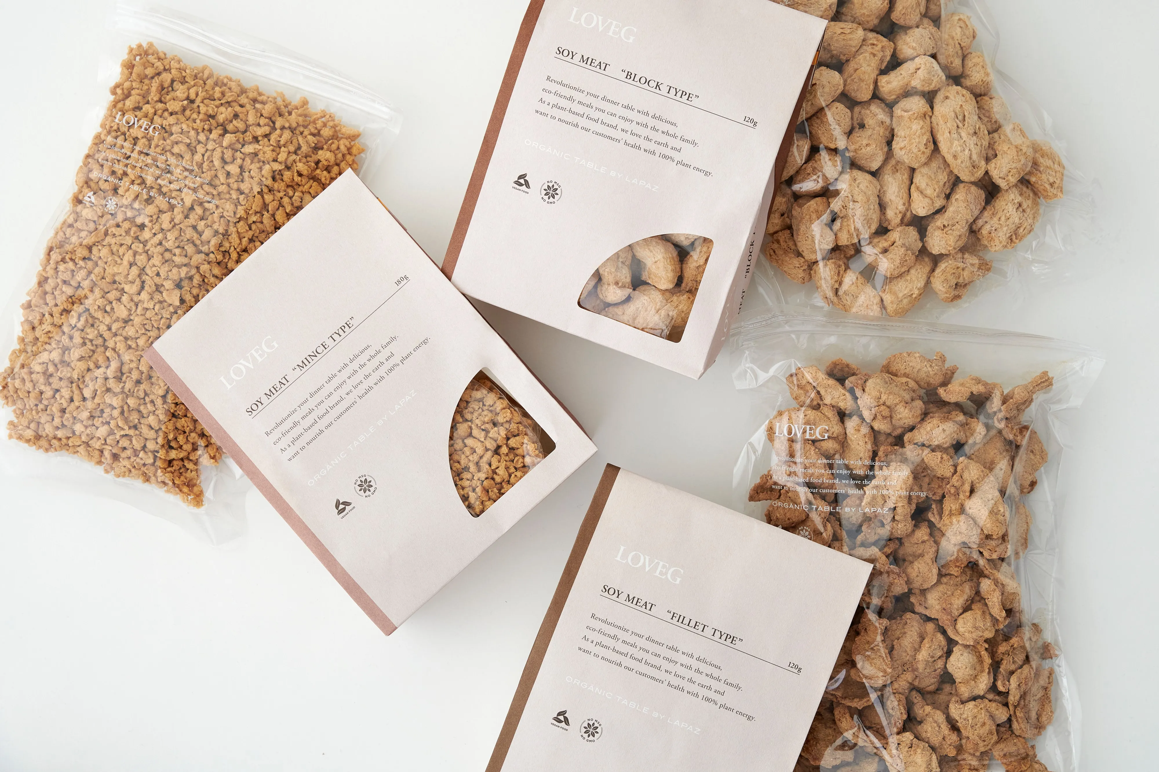 高たんぱく質でグルテンフリー、添加物を使用してない<LOVEG>の大豆ミート。植物性たんぱく質と一緒に食物繊維も摂取できるので、健康的な食生活をサポートします。豊かな食感で食べ応えのある料理におすすめのフィレタイプ、シリーズの中で最も含有たんぱく質量が豊富なブロックタイプ、料理やスープに入れるだけで使えるミンチタイプが揃います。【販売期間:通年販売】