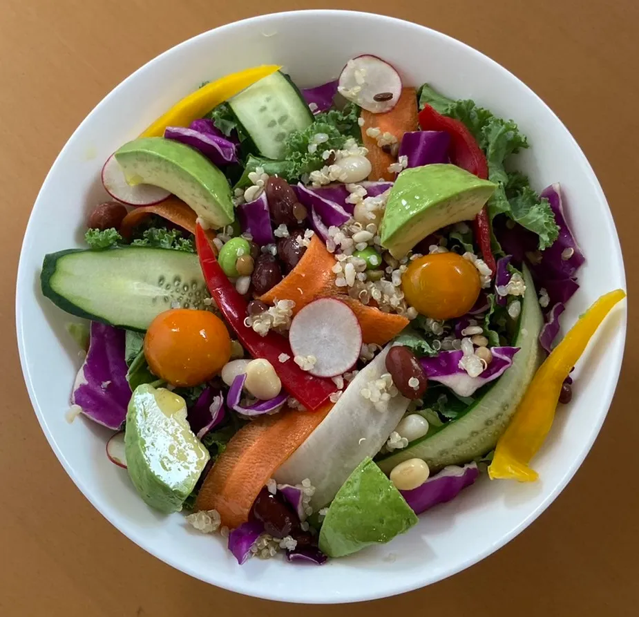 味や栄養価、食感など、サラダ専門店が選び抜いて一皿に凝縮した野菜のオールスター。ケールや紫キャベツ、大根、人参、きゅうり、キヌア雑穀、豆(枝豆、大豆、白インゲン豆、金時豆、ヒヨコ豆)など約20種類の野菜を使い、さまざまな食感も楽しめる、彩鮮やかなサラダに仕上げました。【販売期間:通年販売】